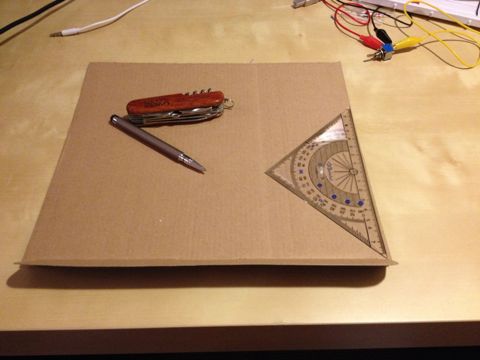 With a few simple tools like swiss army knife, a set square, a pen and some tape, I started destroying one box and building the other :) This is the bottom that you can see here: (the tape roll ran away during the picture)